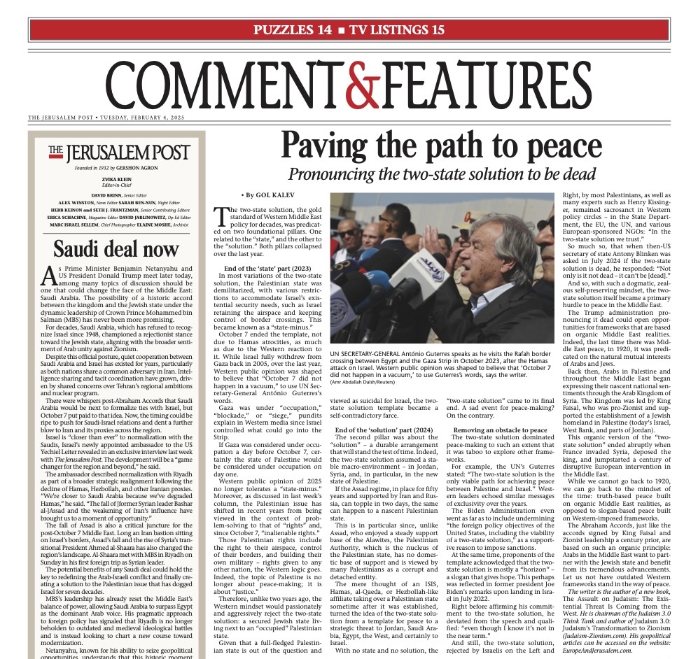 Trump should pronounce the two-state solution dead (February 12, 2025)