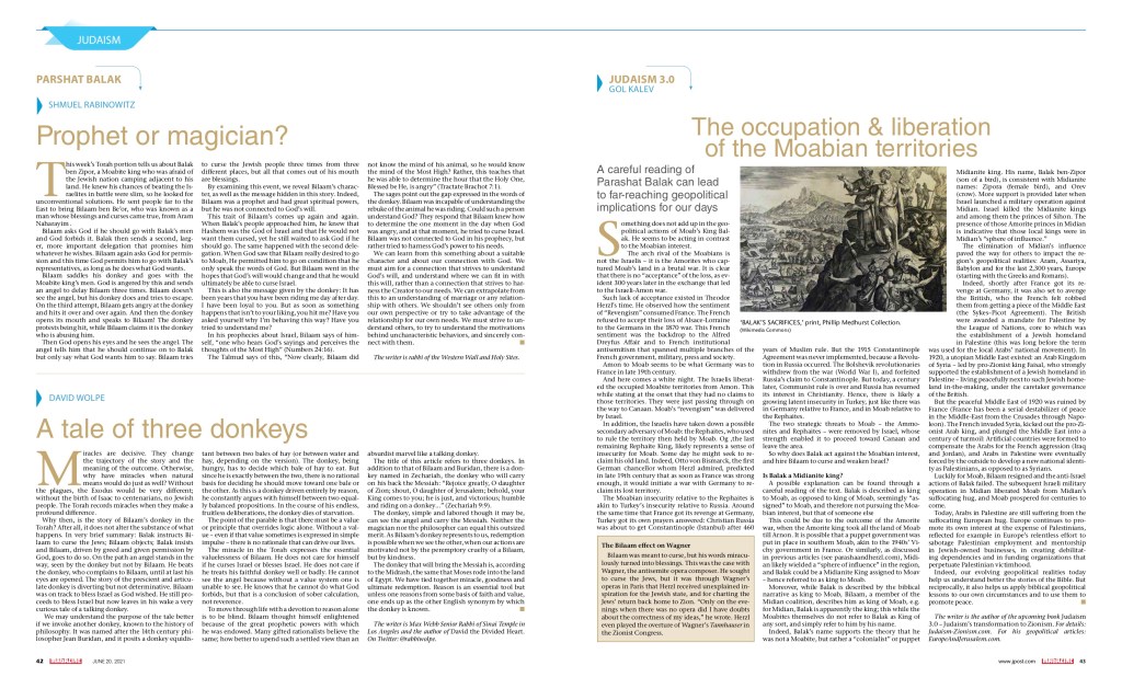 Luckily for Moab, Bilaam resigned and the anti-Israel actions of Balak failed. The subsequent Israeli military operation in Midian liberated Moab from Midian’s suffocating hug, and Moab prospered for centuries to come.