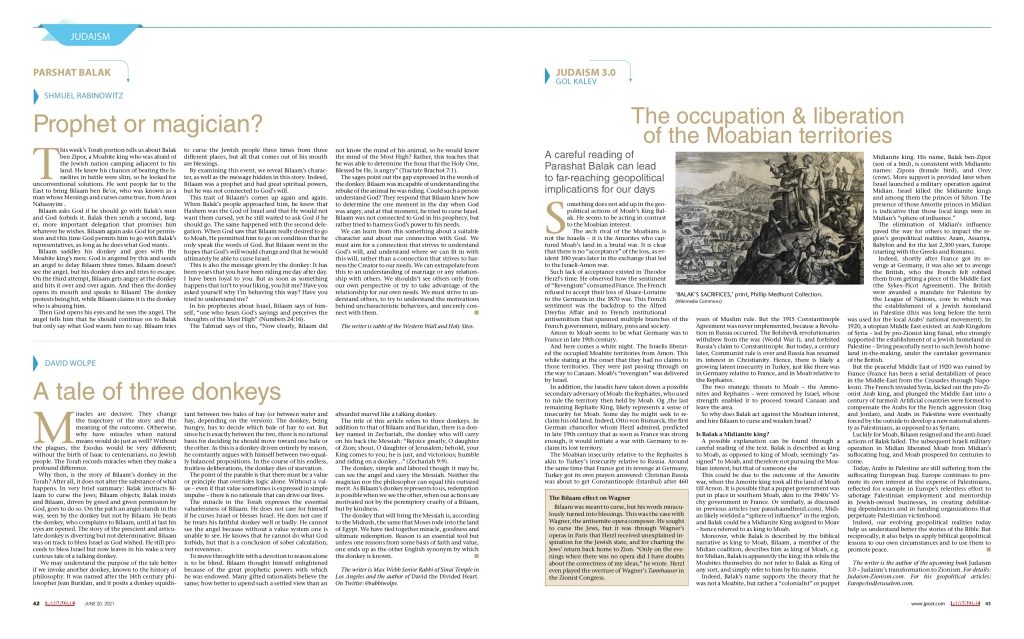 See feeder article: Parashat Balak: The occupation & liberation of the Moabian territories