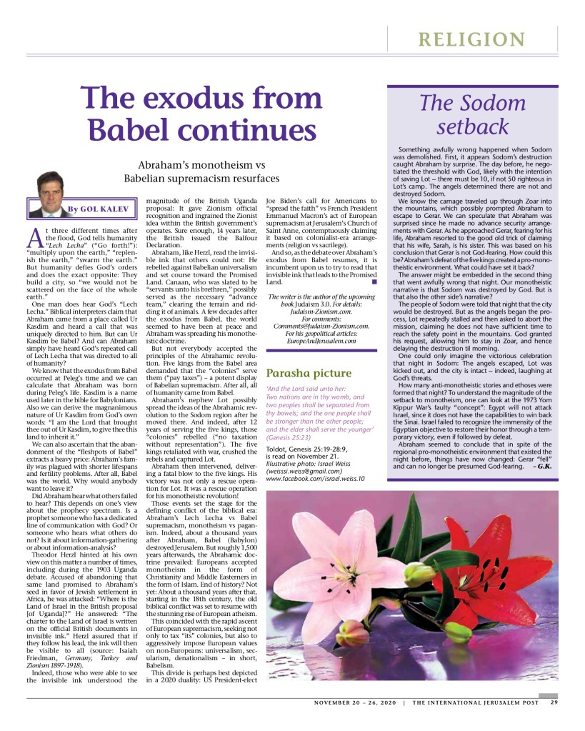 REPRINTS FROM THE JERUSALEM POST; BY GOL KALEV, november 18, 2020